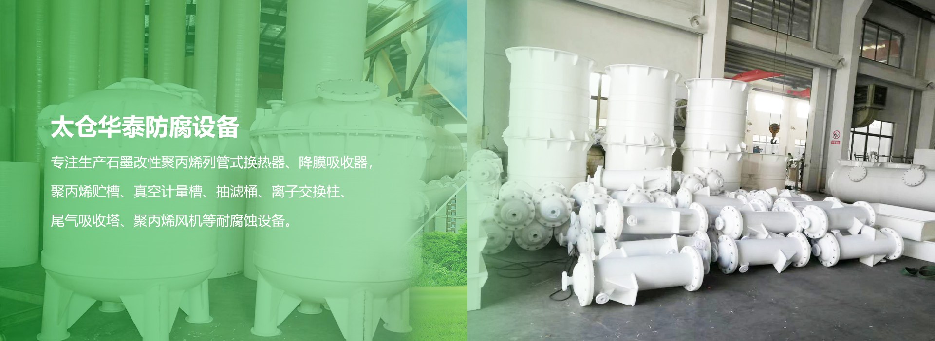 太倉華泰防腐設備有限公司是專業生產石墨改性聚丙烯列管式換熱器、降膜吸收器,聚丙烯貯槽、真空計量槽、抽濾桶、離子交換柱、尾氣吸收塔、聚丙烯風機等耐腐蝕設備。華泰的產品在國內化工、制藥、染料、冶金、食品、石油化纖等許多行業中得到應用。